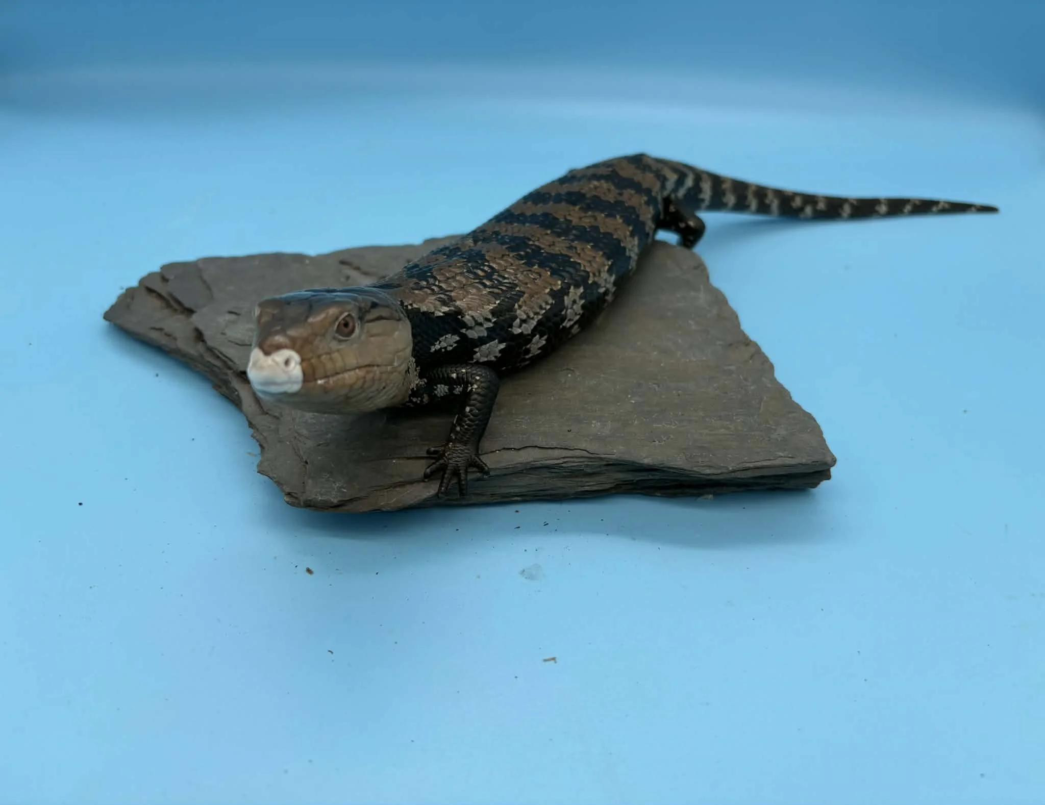Checkers is a Halmahera blue tongued skink. His sweet attiitude and unique face color makes him a wonderful ambassador animal for his species. Name origin: Checkers is named after his patterning on his tail and body.